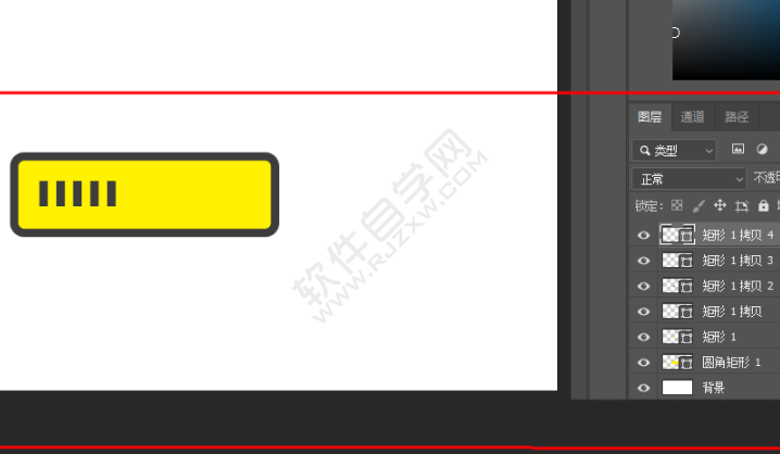 4、绘制一个圆角矩形,填充黄色,与灰色的描边。