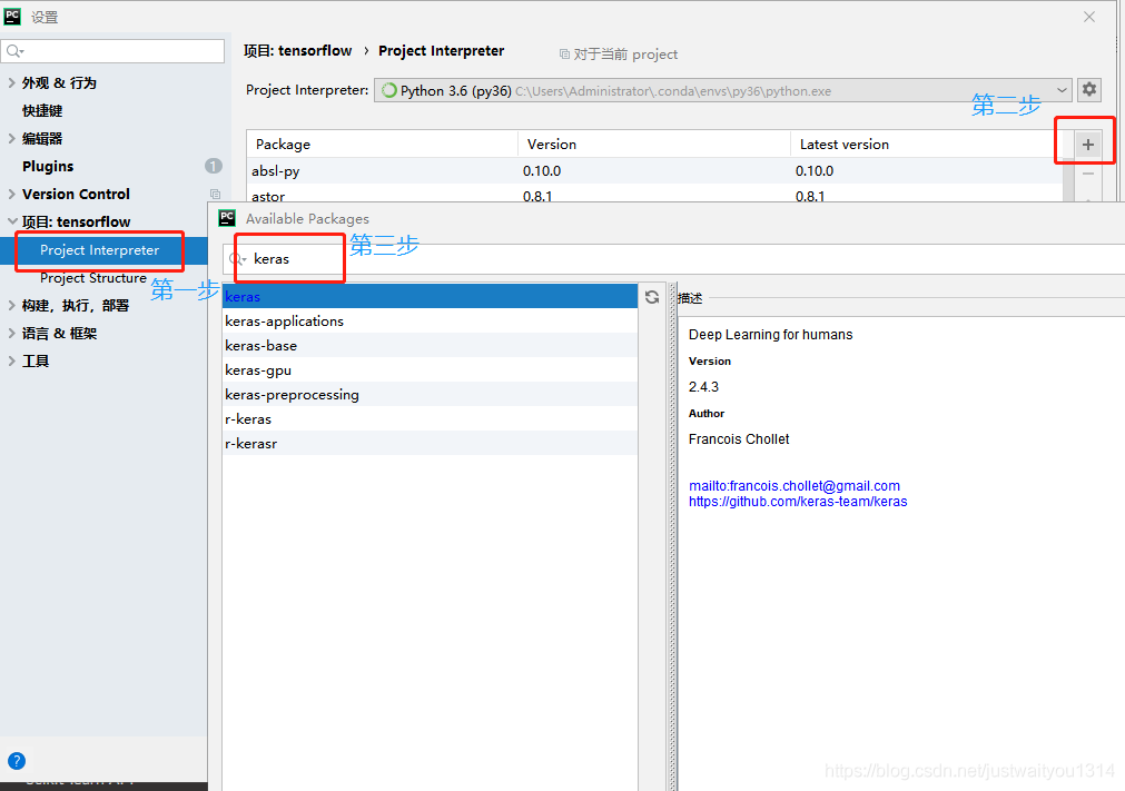 这里我之前设置了阿里的镜像,如果使用其他镜像,或者之前没设置镜像,可以使用命令 pip instll -i https://pypi.douban.com/simple keras==2.1.6当然也可以从设置里面进行导入