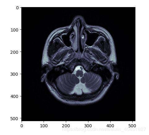 显然颜色是有区别的.导致这种差别的原因是pyplot函数使用的cm也就是'color map' 是简单的'bone' 并不能满足医学图像的要求.