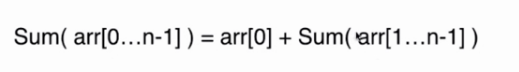 为了能求解从索引为0到n-1的数组元素和,可以分解为第0个数加上索引从1到n-1的数组元素和,如下: