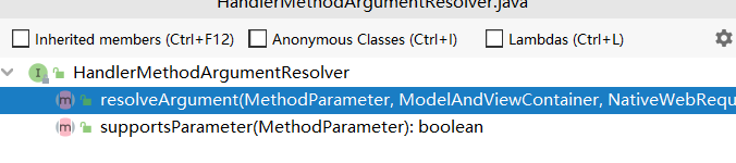boolean supportsParameter(MethodParameter parameter);Object resolveArgument(MethodParameter parameter, @Nullable ModelAndViewContainer mavContainer,先判断是否支持该参数类型, 如果支持, 就调用resolveArgument解析方法
