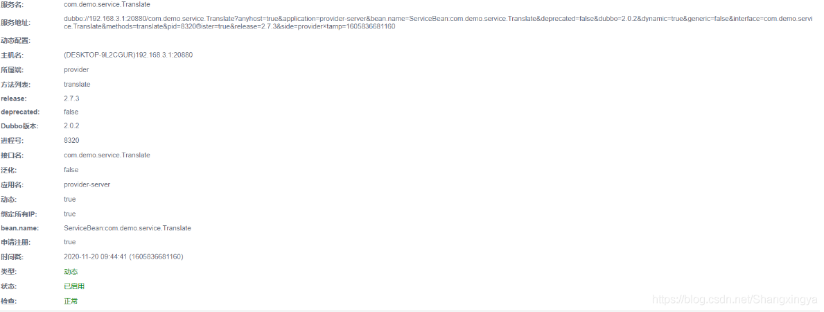 package com.demo.service;import org.apache.dubbo.config.annotation.Reference;import org.springframework.stereotype.Service;@Service //使用Spring的Service添加组件public class Translation { @Reference //远程引用指定的服务,他会按照全类名进行匹配,看谁给注册中心注册了这个全类名 private Translate translate; public String getTranslation(String str) { return translate.translate(str); }}