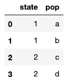 开始验证data={’state’:[1,1,2,2,1,2,2,2],’pop’:[’a’,’b’,’c’,’d’,’b’,’c’,’d’,’d’]}frame=pd.DataFrame(data) frame