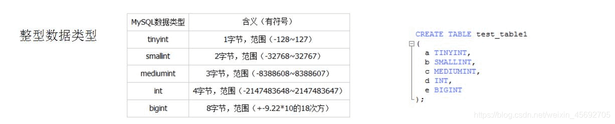 - 各个类别存储空间及取值范围。