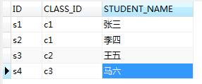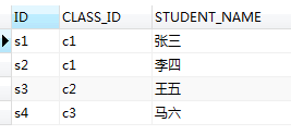 所以 STUDENT表中CLASS_ID字段为(c1,c2)的数据都会被查询出来;
