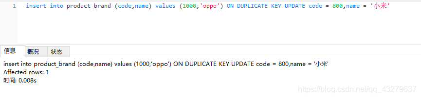 2:ON DUPLICATE KEY UPDATE测试样例+总结: