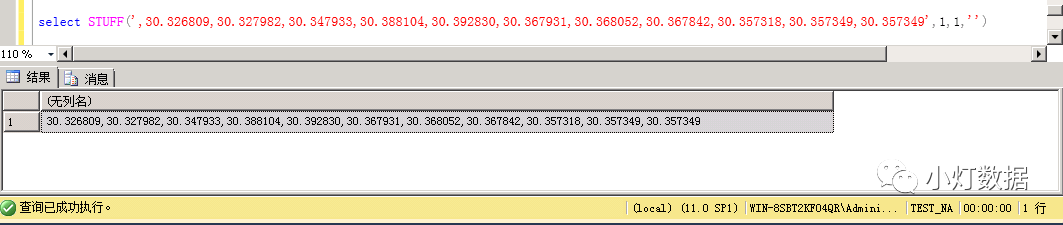 我们使用STUFF函数的目的是把第一个分隔符去掉。先看看效果: