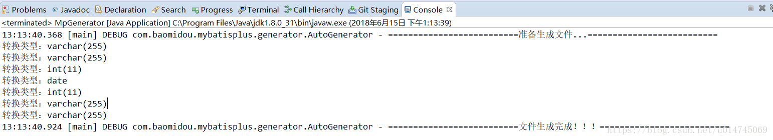 mp的代码生成器有两种方式自动生成代码,一种是通过main方法来执行程序,另一种是通过maven插件build产生。第二种方法需要在pom.xml中添加大量的配置信息,因此本人偏向于使用第一种方式。步骤如下: