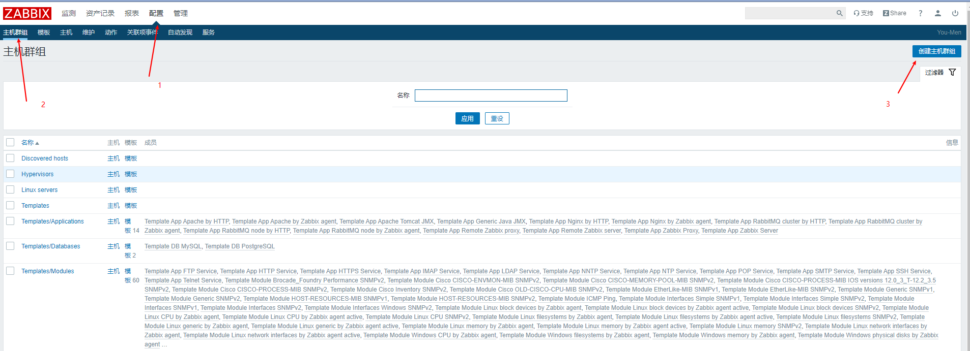 至此,添加本地主机,远程主机,创建主机组,挂载模板就已经完了