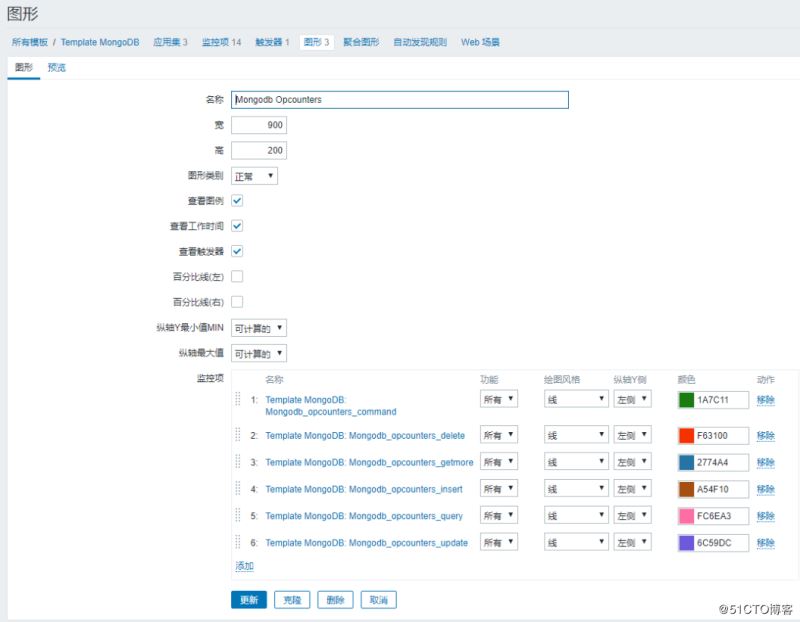 vim /etc/zabbix/zabbix_agentd.d/mongodb.confUserParameter=MongoDB.status[*],/bin/echo "db.serverStatus().$1" |/data/mongodb/bin/mongo --port 37485 -u username -p "password" --authenticationDatabase "admin" | grep "$2" | awk -F " : " "{print $$2}" | awk -F "," "{print $$1}"UserParameter=MongoDB.ok,/bin/echo "db.serverStatus().ok" | /data/mongodb/bin/mongo --port 37485 -u username -p "password" --authenticationDatabase "admin" | sed -n "5p"UserParameter=MongoDB.connections[*],/bin/echo "db.serverStatus().connections.$1" | /data/mongodb/bin/mongo 注:使用超级管理员账号