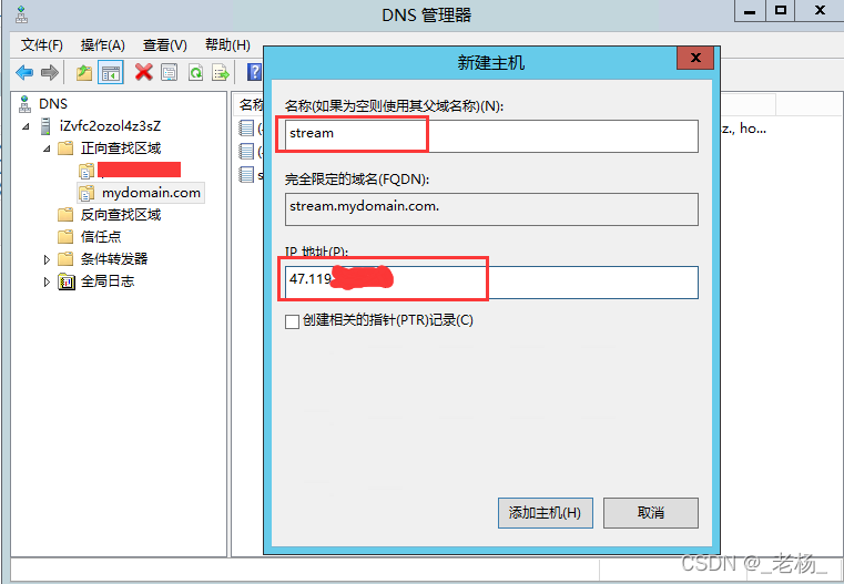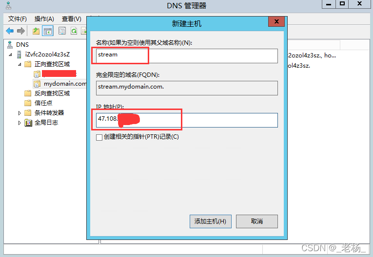 按照以上配置,stream.mydomain.com 就会被解析到 47.108.xx.xx。如果域名需要解析到多台服务器作负载均衡,可以用同样的名称,不同IP按以上步骤添加新的主机
