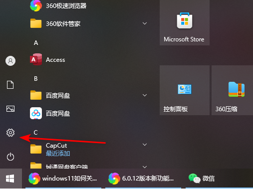 1.首先我们需要打开设置窗口,你可以将开始菜单打开,在打开的开始菜单中将左侧下方的【设置】图标按钮点击一下即可进入到设置页面中,或者是你可以按下快捷键win+i快捷键打开设置窗口。