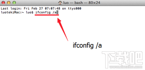 5、在终端中输入“ifconfig”然后回车,来查看IP地址