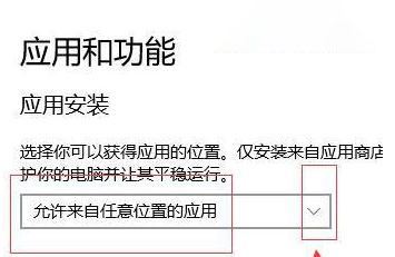 4、在应用和功能设置页面,我们可以看到应用安装下面的设置是允许来自任意位置的应用。章的设置就会导致电脑可能会自动安装一些软件。