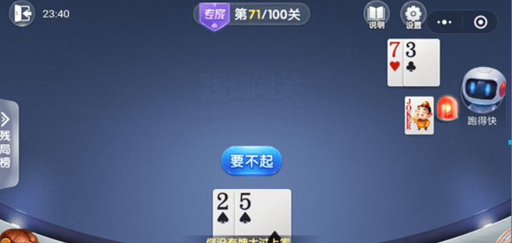 欢乐斗地主残局专家71关怎么过?微信欢乐斗地主残局闯关玩法专家模式的第71关手牌为:2AAKQ108875433,这一关不要让对方的3、6、7溜了就行。下面就让我们一起来看下微信小程序欢乐斗地主专家残局第71关攻略吧。