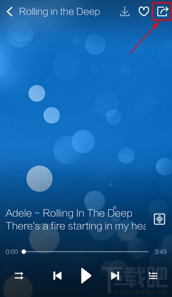 1.进入手机酷狗音乐播放页面,点击右上角的【分享】标志。