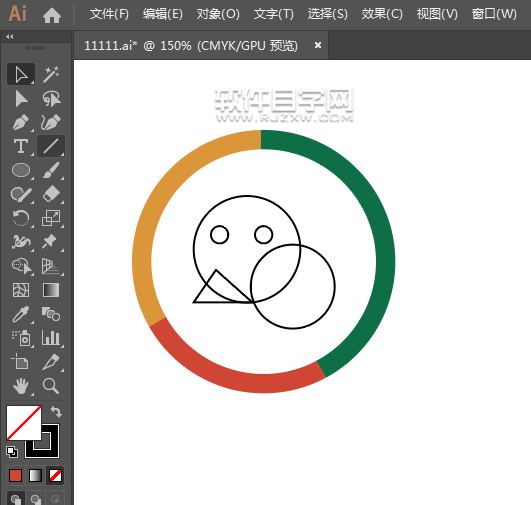 第1步、打开AI软件,点击椭圆工具与直线工具,绘制下面的图形出来,效果如下: