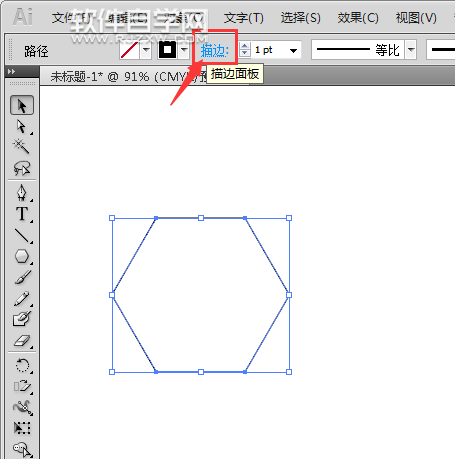 第1步、打开AI软件,绘制一个六边形出来。虚线的间隙要从描边这里设置。