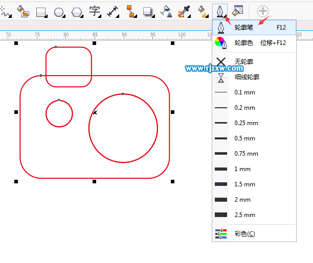 第3步:选中所有对象,点击轮廓笔或按F12。