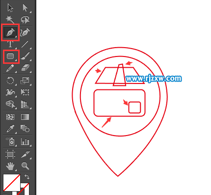 第3步:再使用矩形工具与钢笔工具,绘制里面的商店图形。